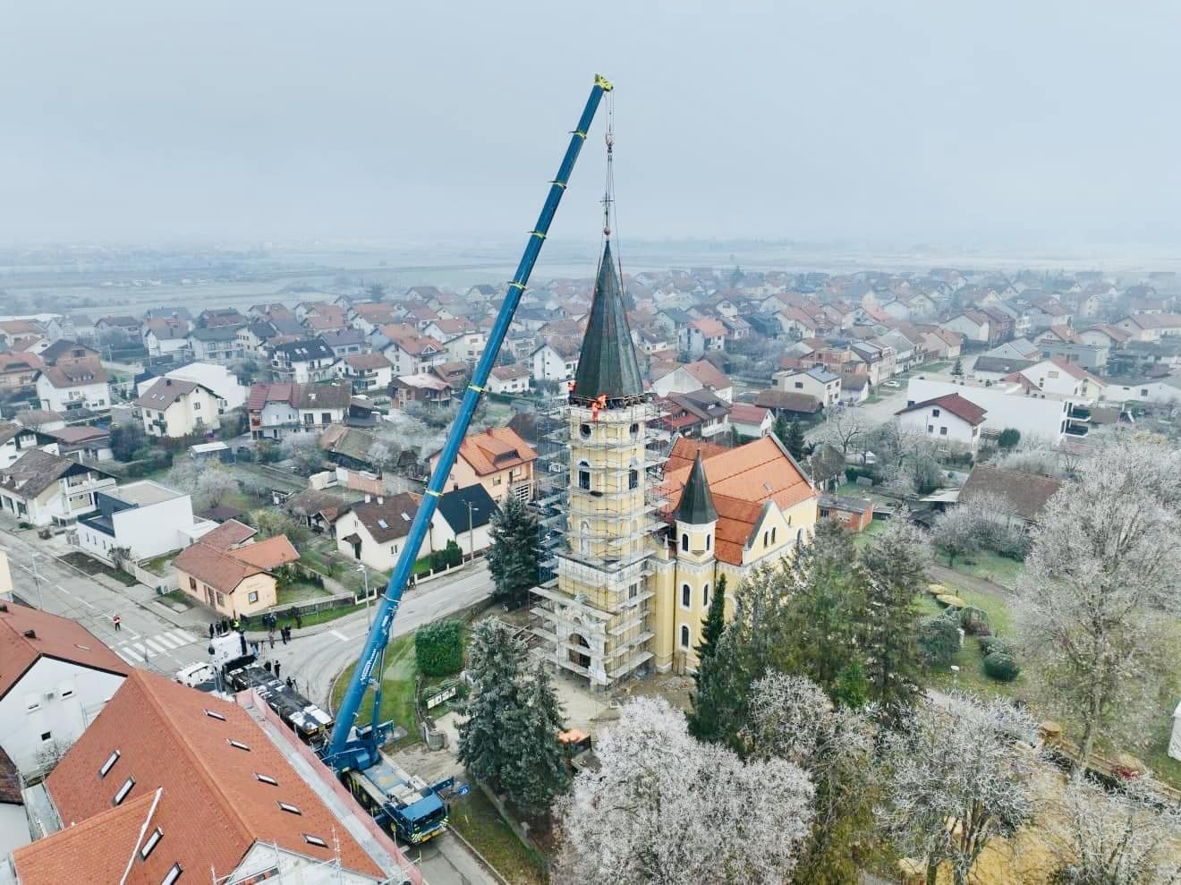 -Prije tri godine crkva je stradala u potresu, zvona su već postavljena,i ovo vraćanje kape na zvonik je prekrasan trenutak za sve Velikogoričane jer ova je crkva i simbol Velike Gorice. Nakon ovoga kao društvena zajednica pristupit ćemo i renovaciji crkve iznutra-dodao je gradonačelnik, Krešimir Ačkar.