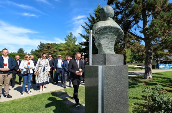Vijenac i svijeće položeni su i pod bistu prvog hrvatskog predsjednika dr. Franje Tuđmana u središnjem gradskom parku koji nosi njegovo ime.